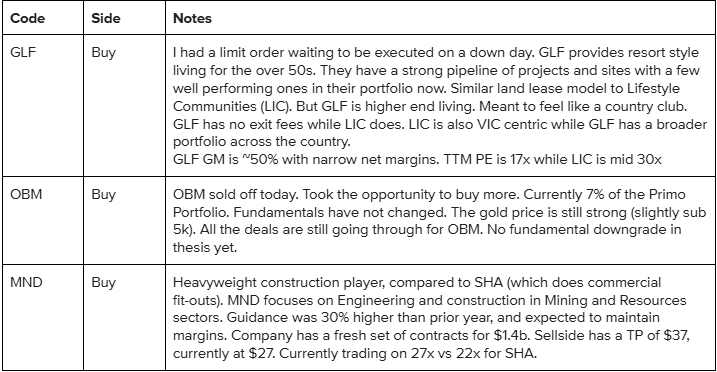 Materials were the worst performing sector, then IT and HC. Companies with a direct exposure to the oil price, like WDS, were up. Defensive names like WOW and COL were also up. The portfolio is still ~60% cash so there is plenty of dry powder to deploy. Until there is clarity on the Strait, it is expected the market will continue to fall.