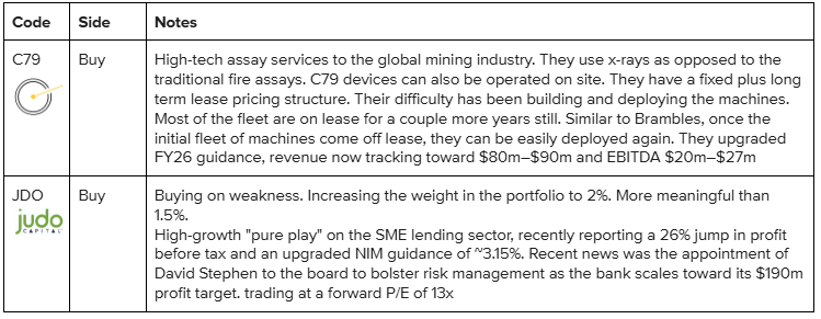 CBO and COL gained as Staples were the winning sector. They are the only exposures in the portfolio to Consumer Defensives. SHA and CCL were slightly up. The rest of the portfolio was down. OBM was the worst performer today. Tech and Financials and Materials are the largest weights in the portfolio and are therefore adversely affected by the market movements.
