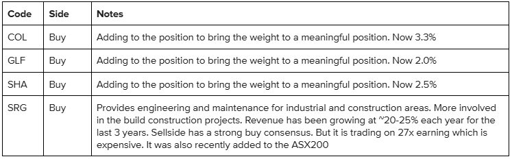 It was a red day all around. WDS, SHA and COL were the only stocks that rallied. Energy and Staples are the only sectors defending the portfolio from drawdown. Worst performers for the day were ZIP and 360 with MP1 as the third worst. Technology is still drawing down from the disruption of AI. For the aforementioned stocks, the disruption is unfounded and hopefully a short term drag on the portfolio.