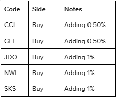 Bought NWL, SKS, CCL, JDO, GLF